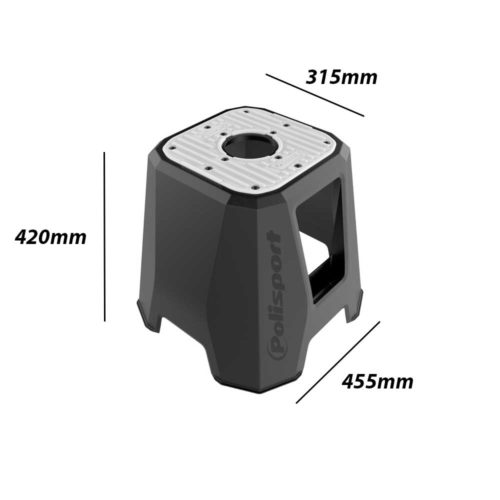 El stand de pista de Polisport sigue ganando popularidad gracias a su material ultraligero y a su alfombrilla de goma de color personalizado. Ofrece excelentes características para estar junto a la pista, como un fácil acceso para los cambios de aceite. Dispone de una superficie increíble para promocionar a los patrocinadores o para ilustrar el nombre y los dorsales de los pilotos.
