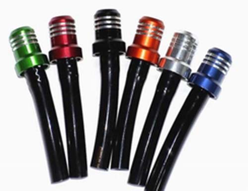 Permite la ventilación de su motocicleta o el tanque de gasolina de su ATV sin dejar que se derrame el combustible mientras conduce. Cuenta con una manguera negra con un orificio de ventilación anodiz