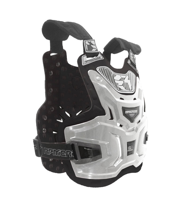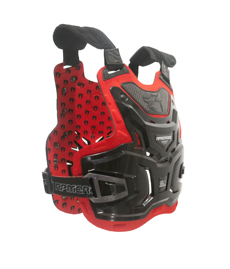 Base y hombros en EVA termoformada sublimada, con refuerzos plásticos, doble ajuste en los costados con elástico.