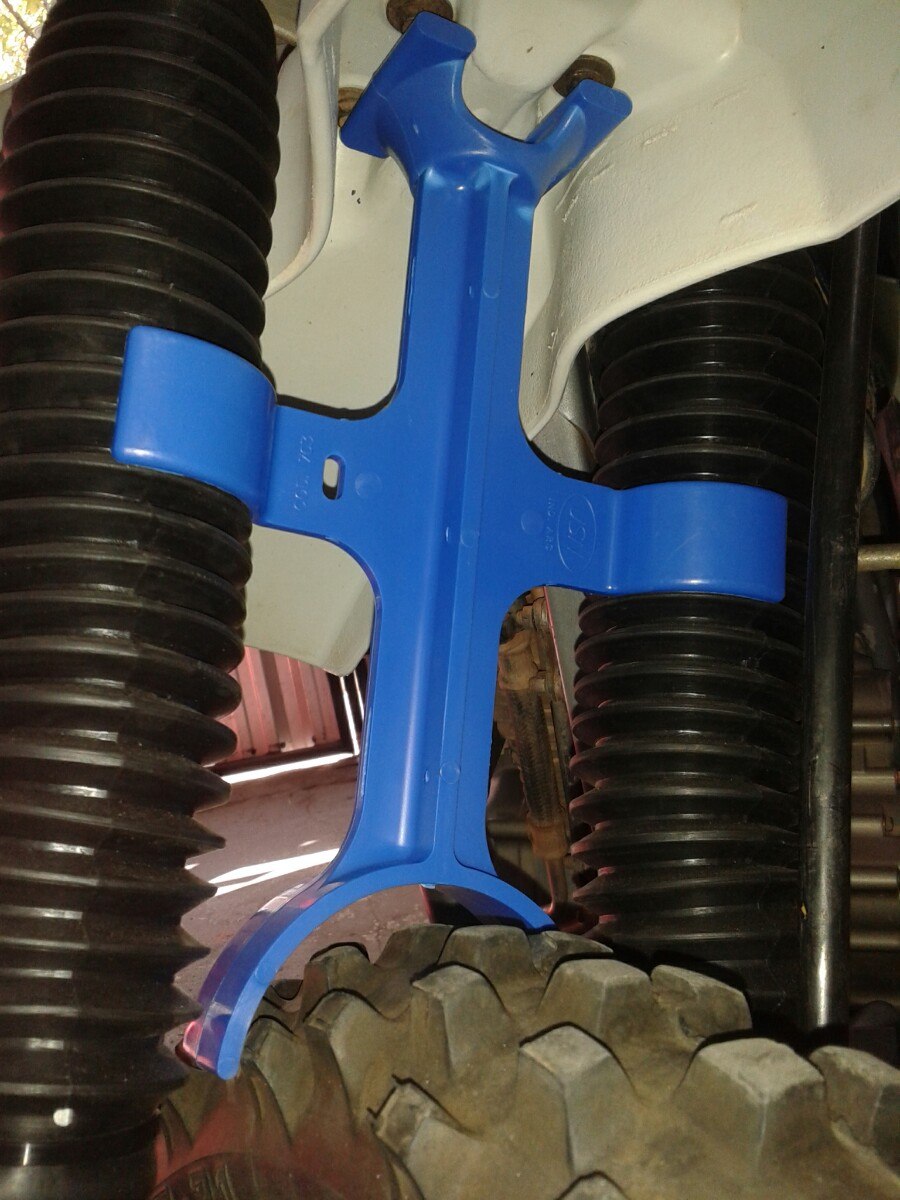 Util para poner entre y el neumatico delantero,durante el transporte de la moto,para no deteriorar la suspension delantera y que haga de tope para que no se nos caiga la moto del remolque